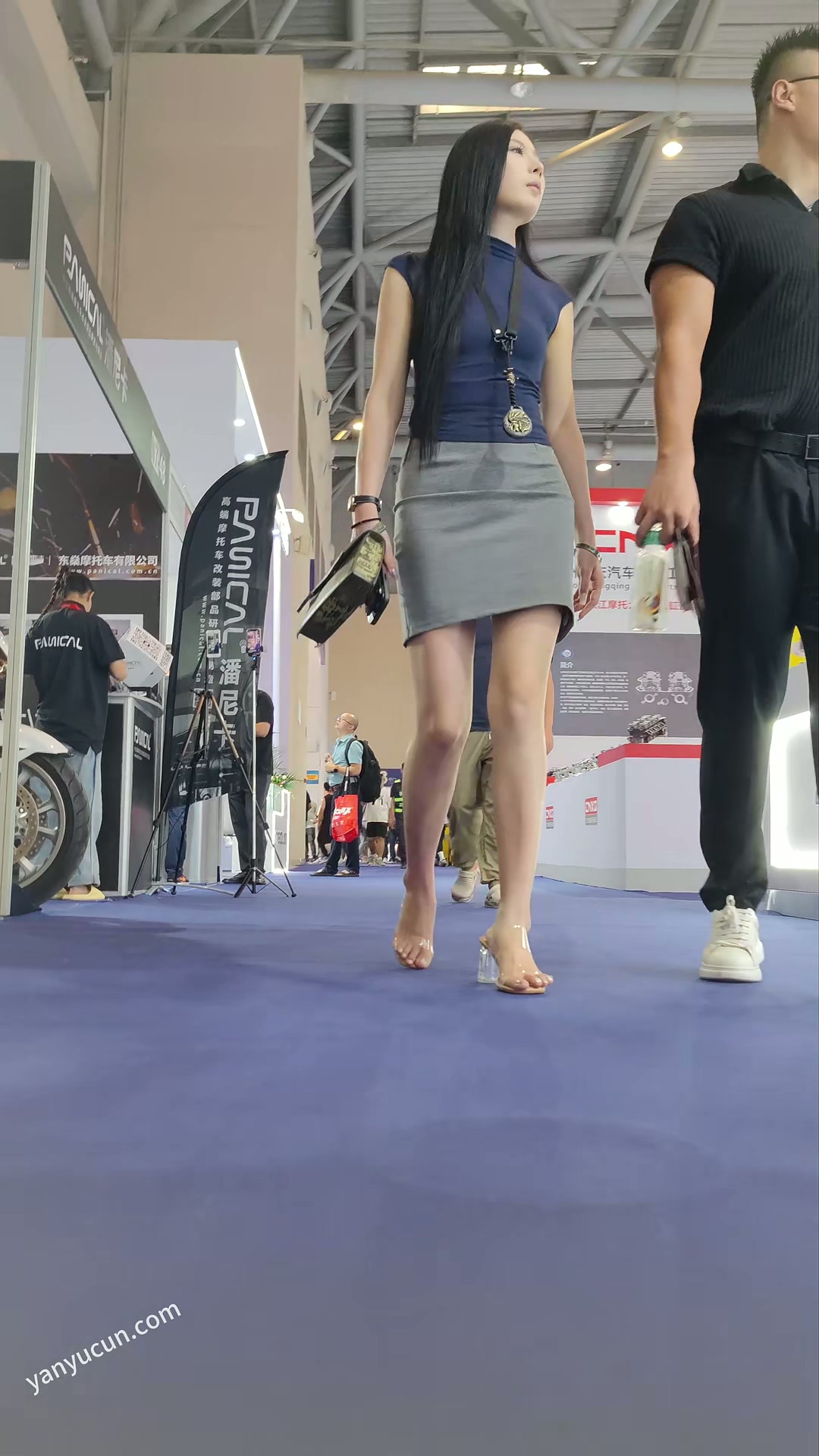 XM390灰色后面开叉极品美女和男朋友参加展会,性感白色窄内