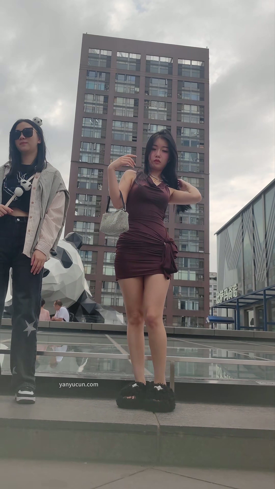 XM318棕色包臀裙极品性感美女网红打卡地拍照,白色丁字裤 318