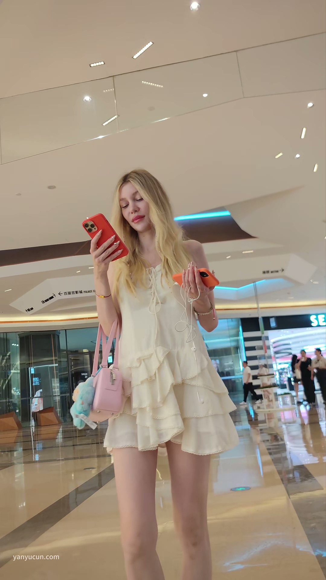 XM328白色连衣裙极品外国留学女大学生,黑色丁字裤 ...