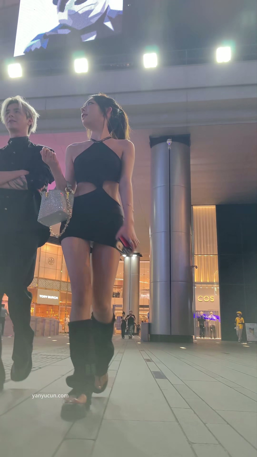 XM329黑色露背超级性感裙子美女和朋友逛街,白色内内 ...