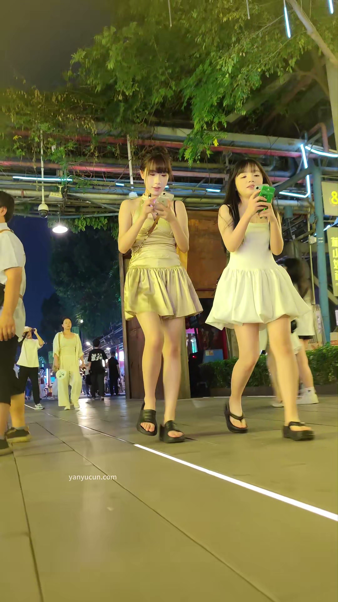 XM348白色连衣裙清纯小美女和闺蜜逛街,清纯外表下内裤 ...