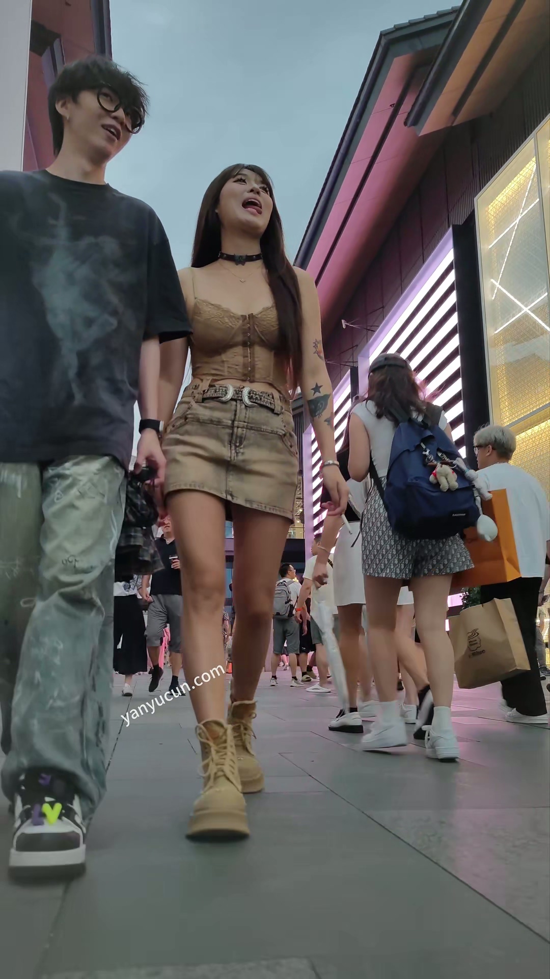 XM381牛仔超短裙小姐姐和男朋友逛街,灰色窄内 ...