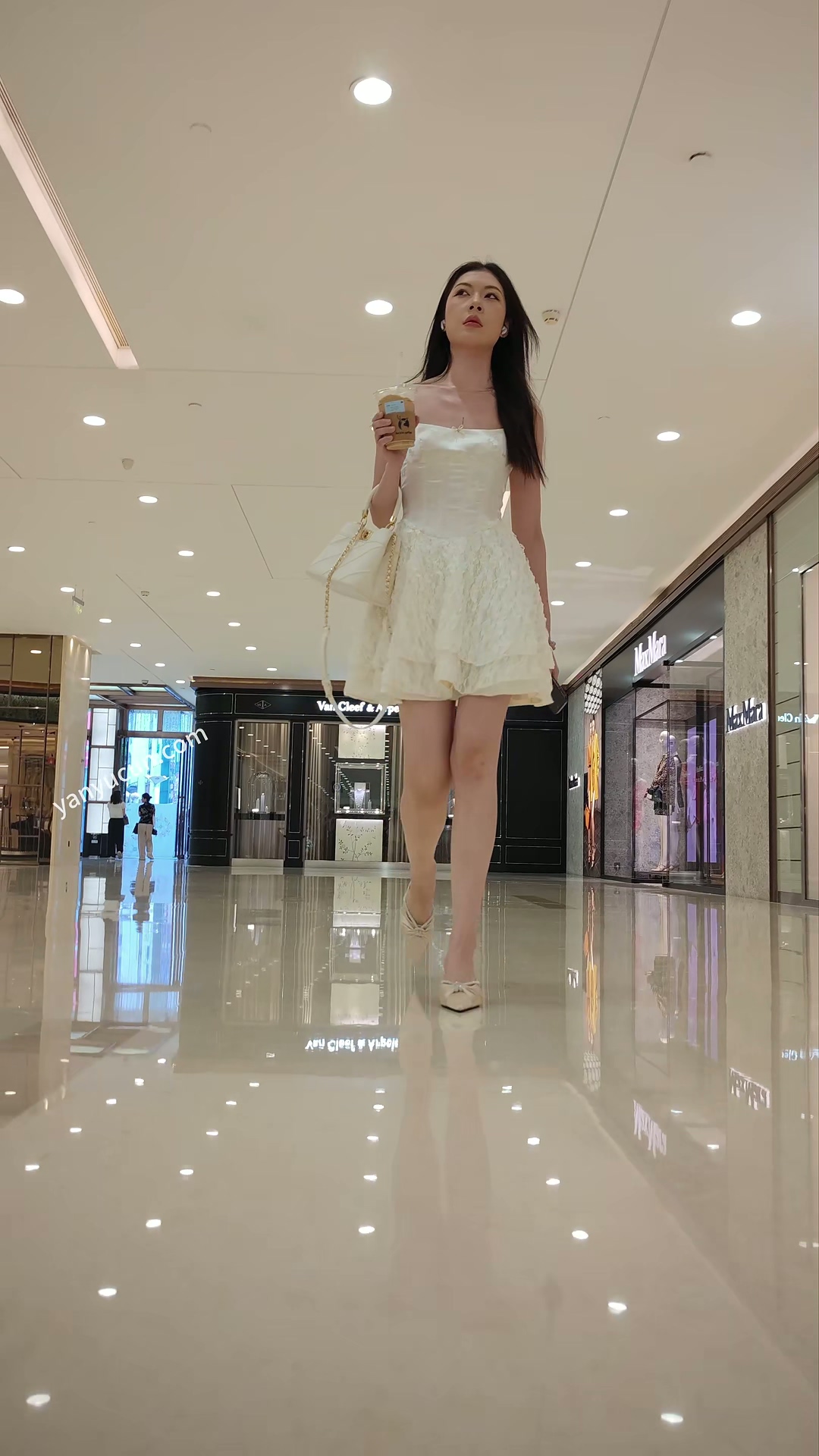 XM400黄色连衣裙极品气质美女一个人逛街,黑色窄内 ...