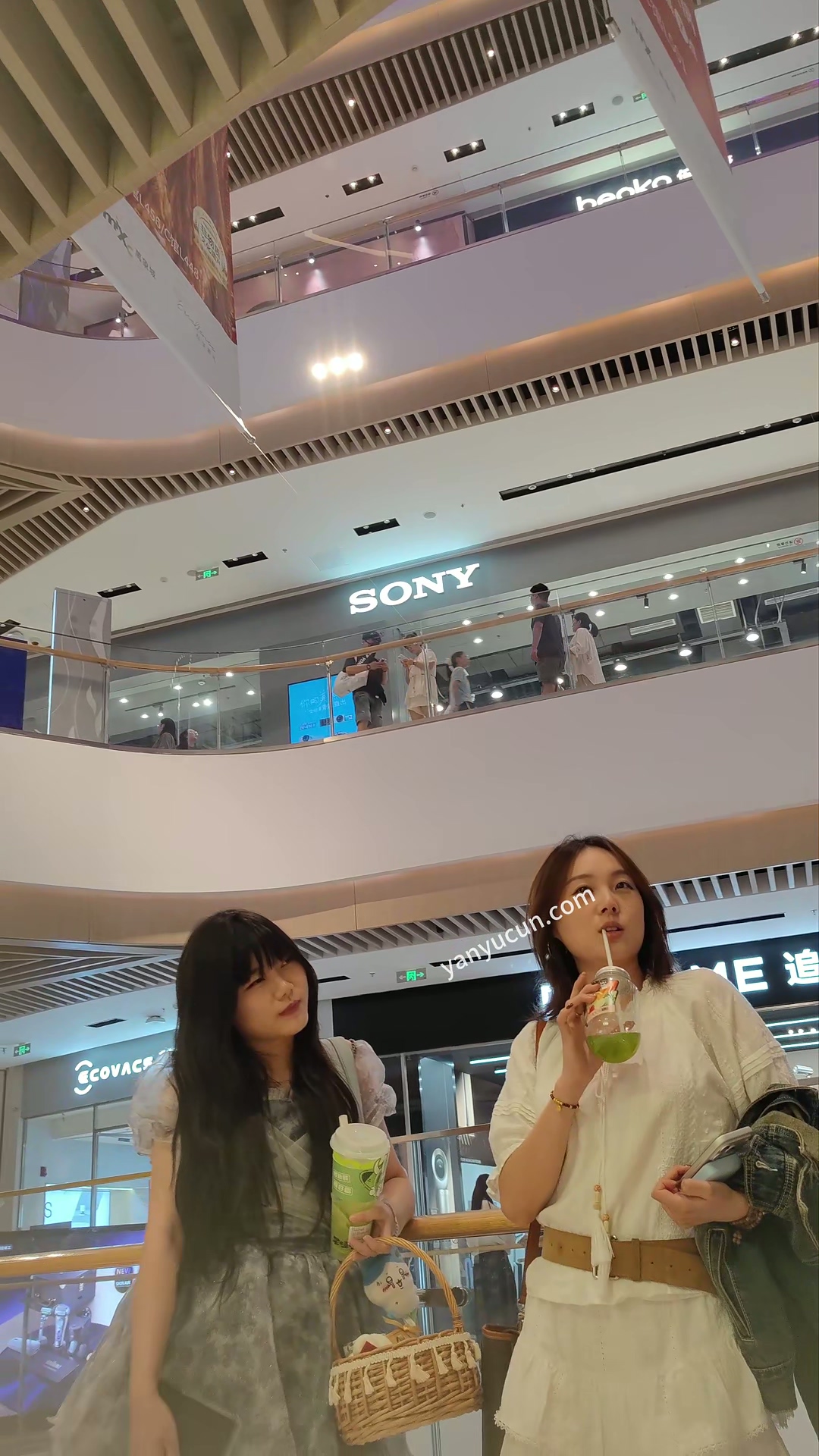 XM407黑丝短腿袜连衣裙小姐姐和朋友逛街,白色内内