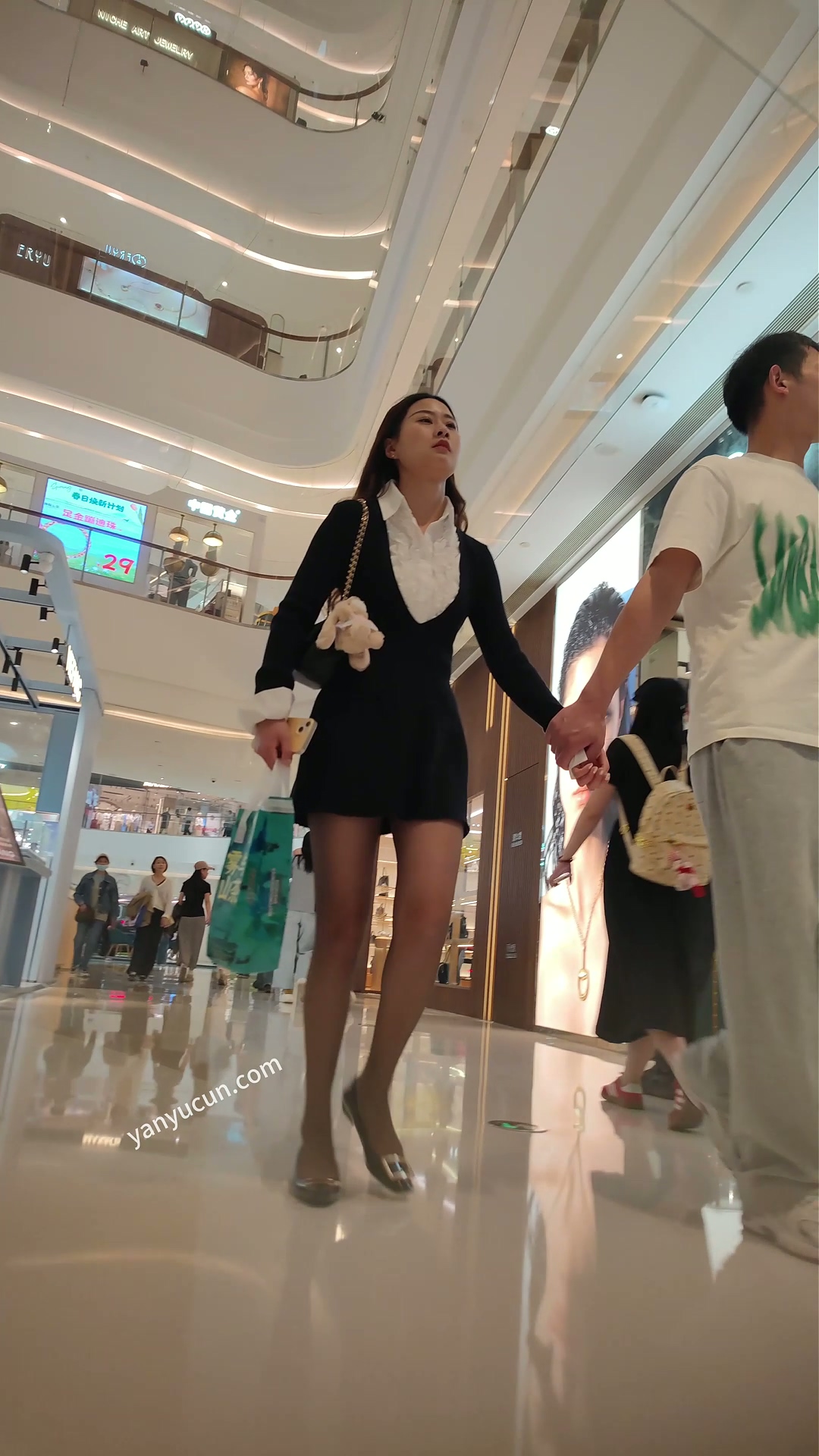 XM419黑色连衣裙黑丝小姐姐和男朋友逛街,白色内内 ...